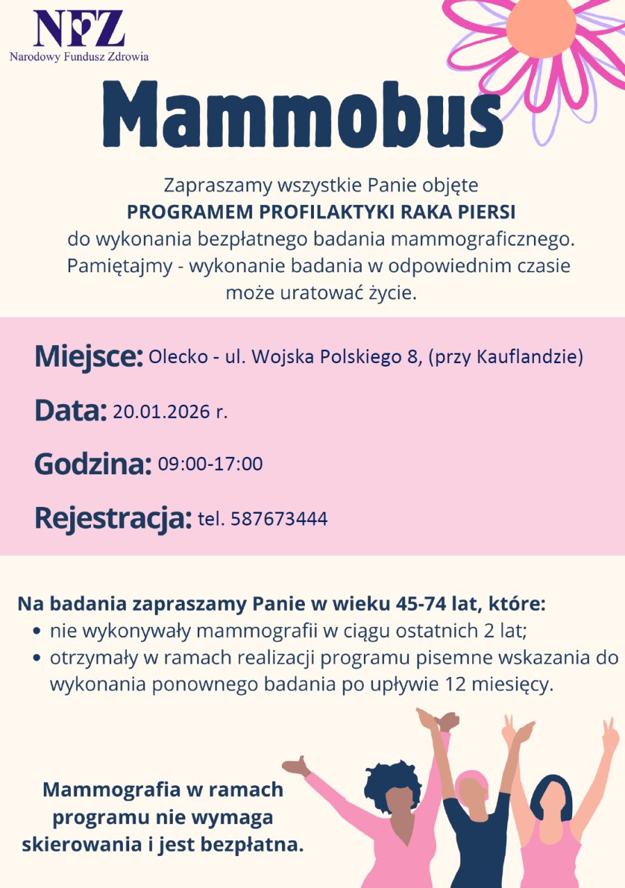 - 20 stycznia 2026 r. w godz. 9:00-17:00 na ul. Wojska Polskiego 8 w Olecku przy Kauflandzie, tel. 58 767 34 44.